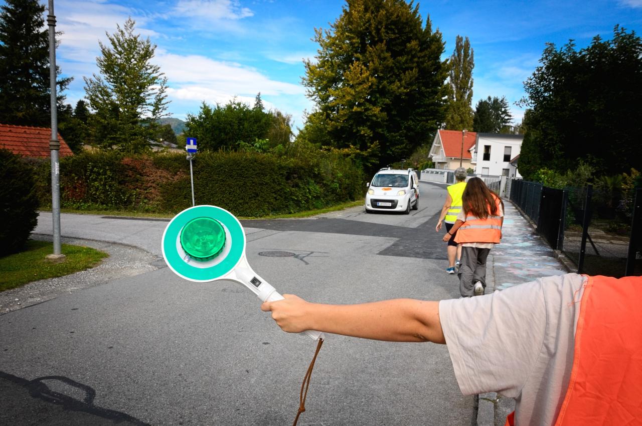Die Schüler:innen halten mit Hilfe der Polizei alle Verkehrsteilnehmer:innen vor der Schule auf, informieren sie über die Mobilitätswoche und bitten sie, möglichst umweltfreundlich unterwegs zu sein. Autofahrer:innen erhalten eine Infopostkarte und eine saure Zitrone. Fußgänger:innen und Radfahrer:innen bekommen einen Apfel als Dankeschön.