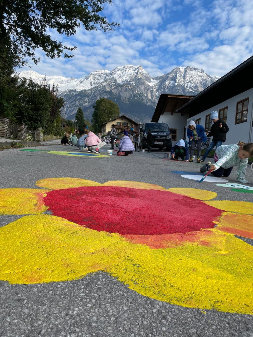 Am 19. September 2025, von 9 – 12 Uhr, bemalen die 3. Klassen der Volksschule Mils die Straße vor dem Vereinshaus – Schneeburgstraße 15 – 19.