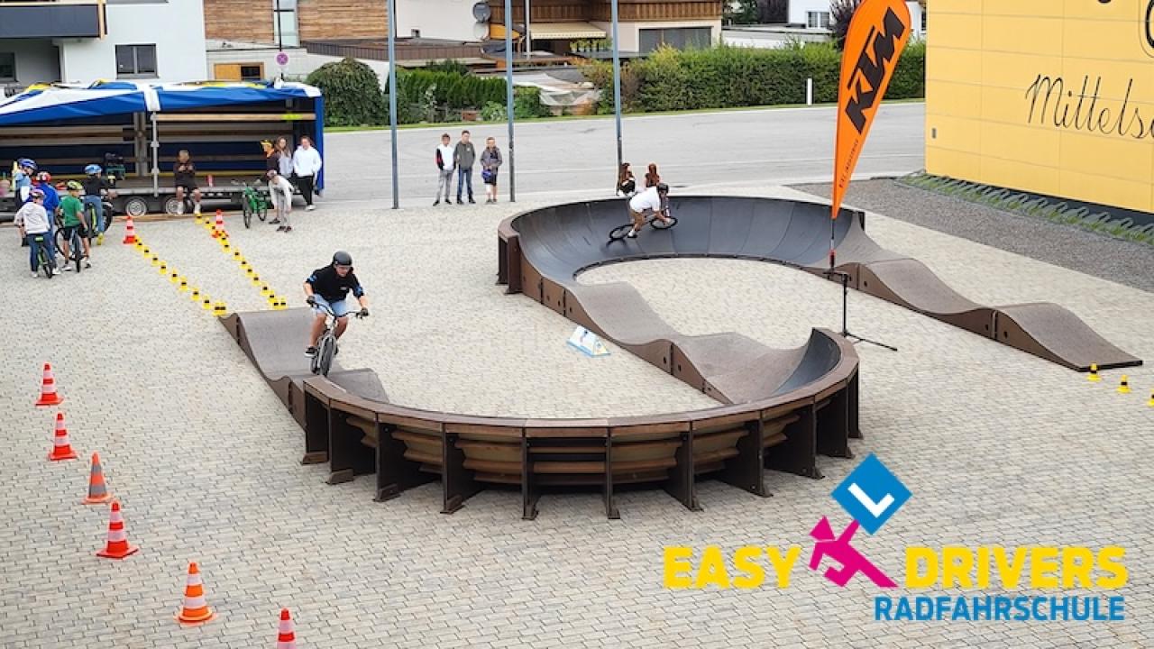 Pumptracks erfreuen sich großer Beliebtheit und sind aus dem modernen Bewegungsalltag junger Menschen kaum mehr wegzudenken. Bei der Mobilitätswoche 2025 ist die Easy Drivers Radfahrschule mit einem mobilen Pumptrack in mehreren Regionen Österreichs unterwegs – ein Bewegungsangebot für Kinder und Jugendliche, das Rad, Scooter, Skateboard oder Inline-Skates miteinbezieht.