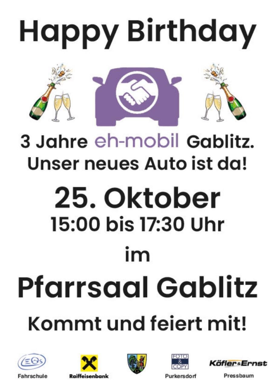 Unser Mobilitätsverein eh-mobil Gablitz feiert seinen 3. Geburtstag!