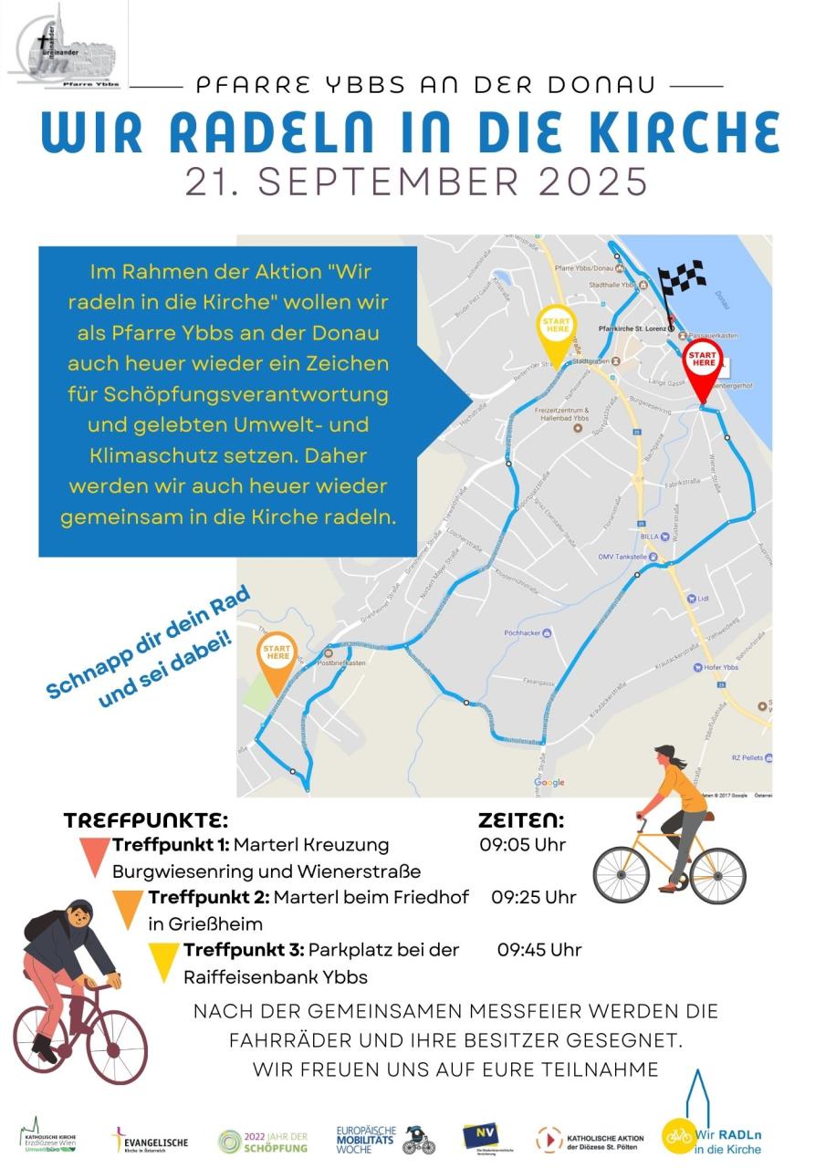 Zurück zu den Veranstaltungen Radfahren Radsternfahrt anschl. Gottesdienst 21.09.2025 09:00 - 11:00 Uhr Niederösterreich Radsternfahrt zum Gottesdienst anschl. Fahrradsegnung