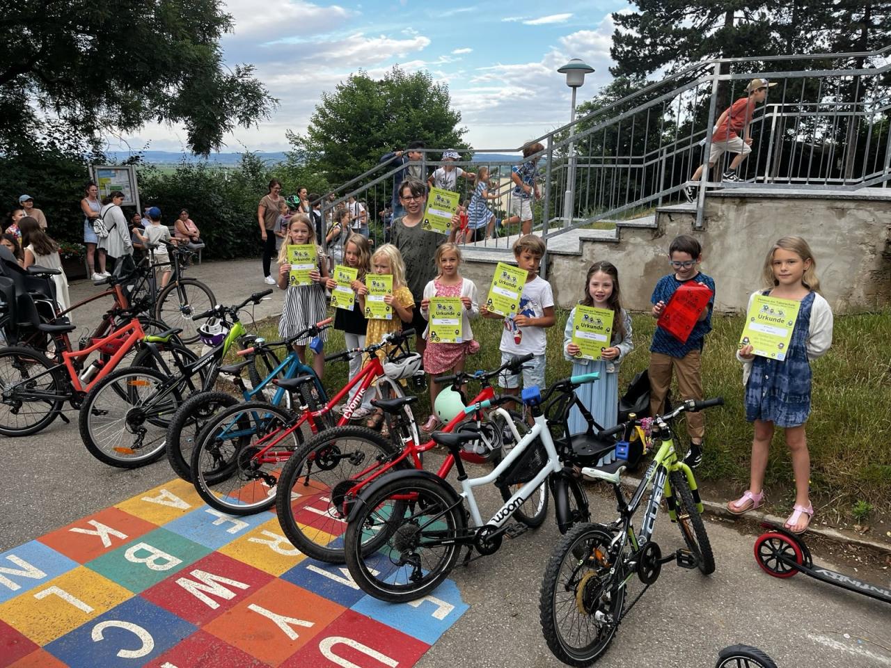 Täglicher gemeinsamer Schulweg mit den Fahrrädern in einer Gruppe Schüler:innen inkl. Begleiter:innen